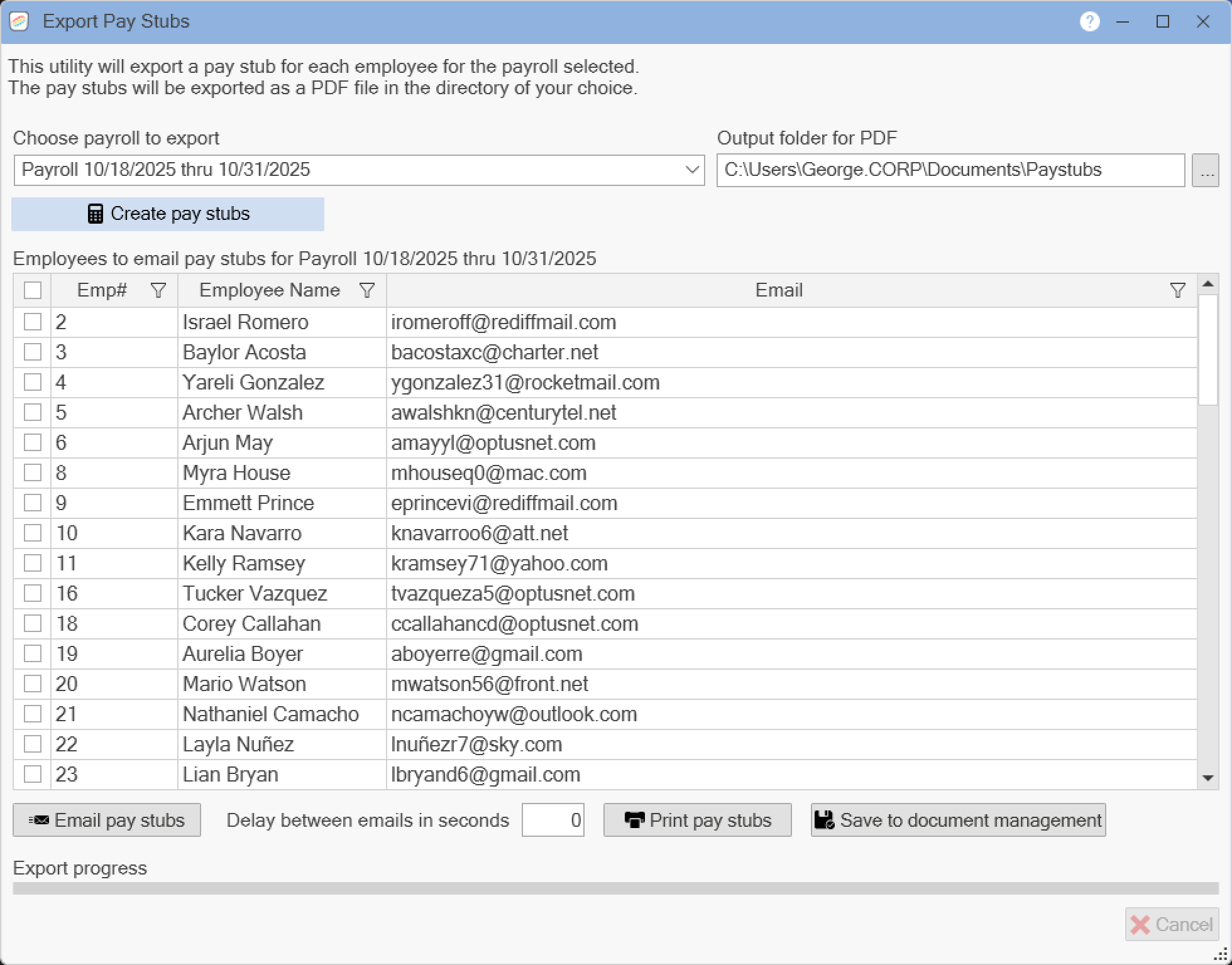 DESCRIPTION: Export Paystubs allows you to email pay stubs to your employees.